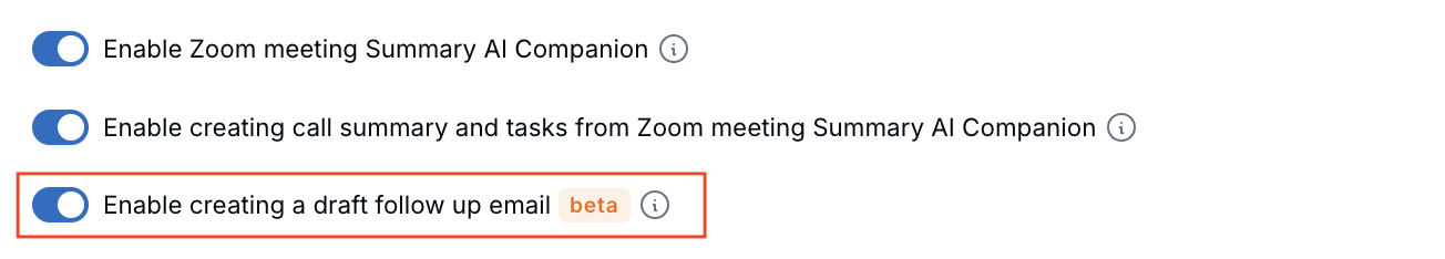 Note: This feature is currently launched in beta. Zoom integration is required, and the Zoom AI Companion must be enabled. Activating Zoom AI Companion requires a Zoom Pro plan or higher.
